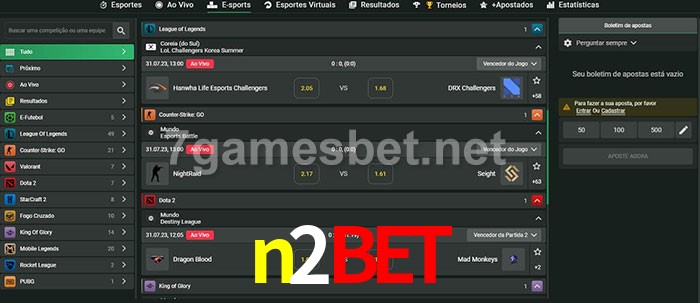 O n2bet oferece uma grande seleção de opções de apostas em e-sports com probabilidades competitivas